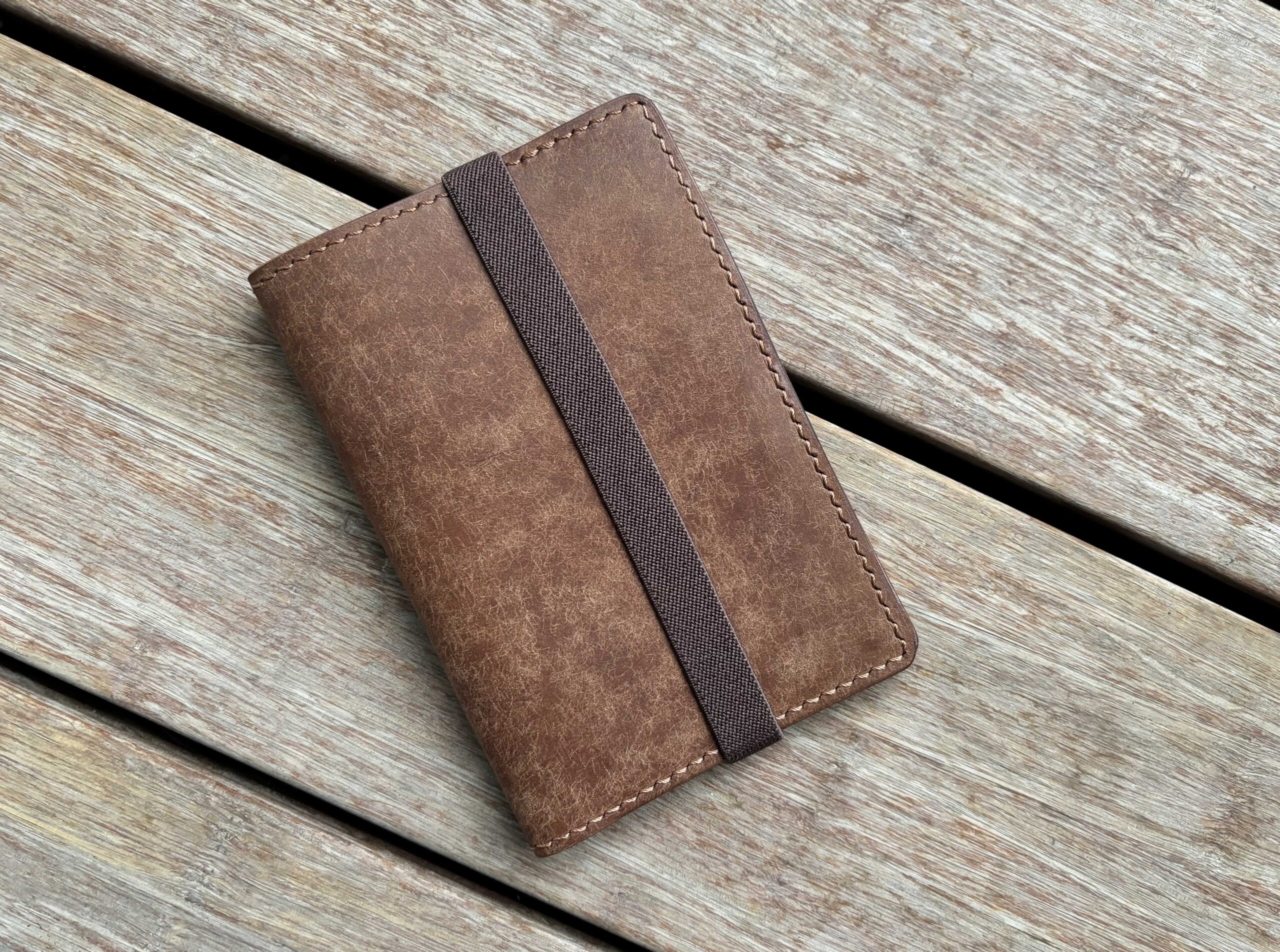 Each full-grain leather hide (1.3- 1.5 mm thick) is unique, with natural variations in color, texture, and markings like scars, stamps on the flash side or stretch marks. These characteristics contribute to the rustic, vintage look of our handmade covers. If you prefer leather with fewer natural marks, please let us know in the order comments—we will do our best to accommodate your request.