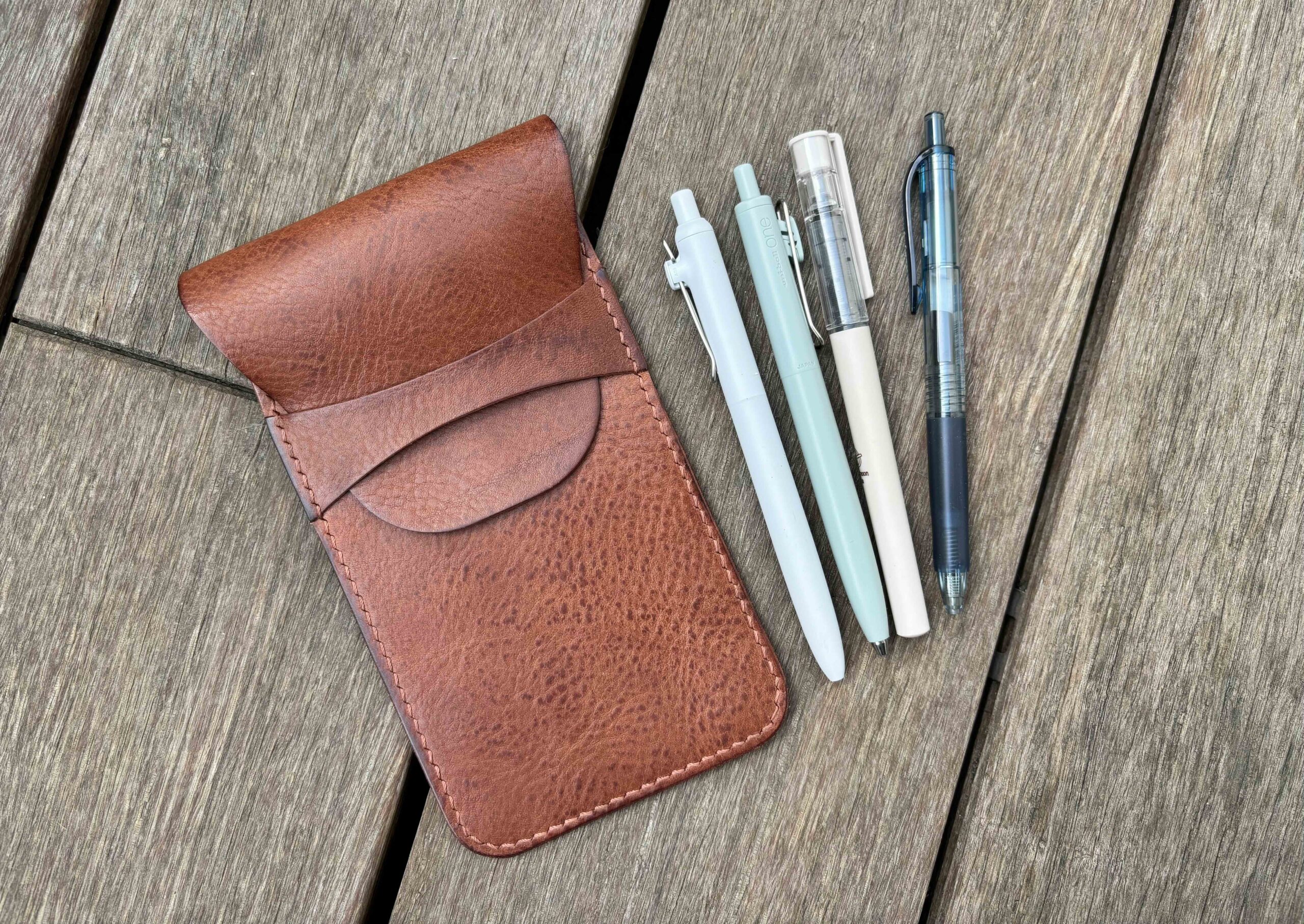 Each full-grain leather hide (1.3- 1.5 mm thick) is unique, with natural variations in color, texture, and markings like scars, stamps on the flash side or stretch marks. These characteristics contribute to the rustic, vintage look of our handmade covers. If you prefer leather with fewer natural marks, please let us know in the order comments—we will do our best to accommodate your request.