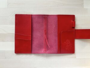 Naturale (undyed), Rosso, Sand – stiff crust leather (La Perla Azzurra, Italy; 1,3 – 1,5 mm)
