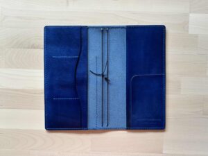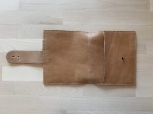 The leather is vegetable tanned and dyed, so the more you use it, the more the color will change and the buffed leather will have a unique shine.