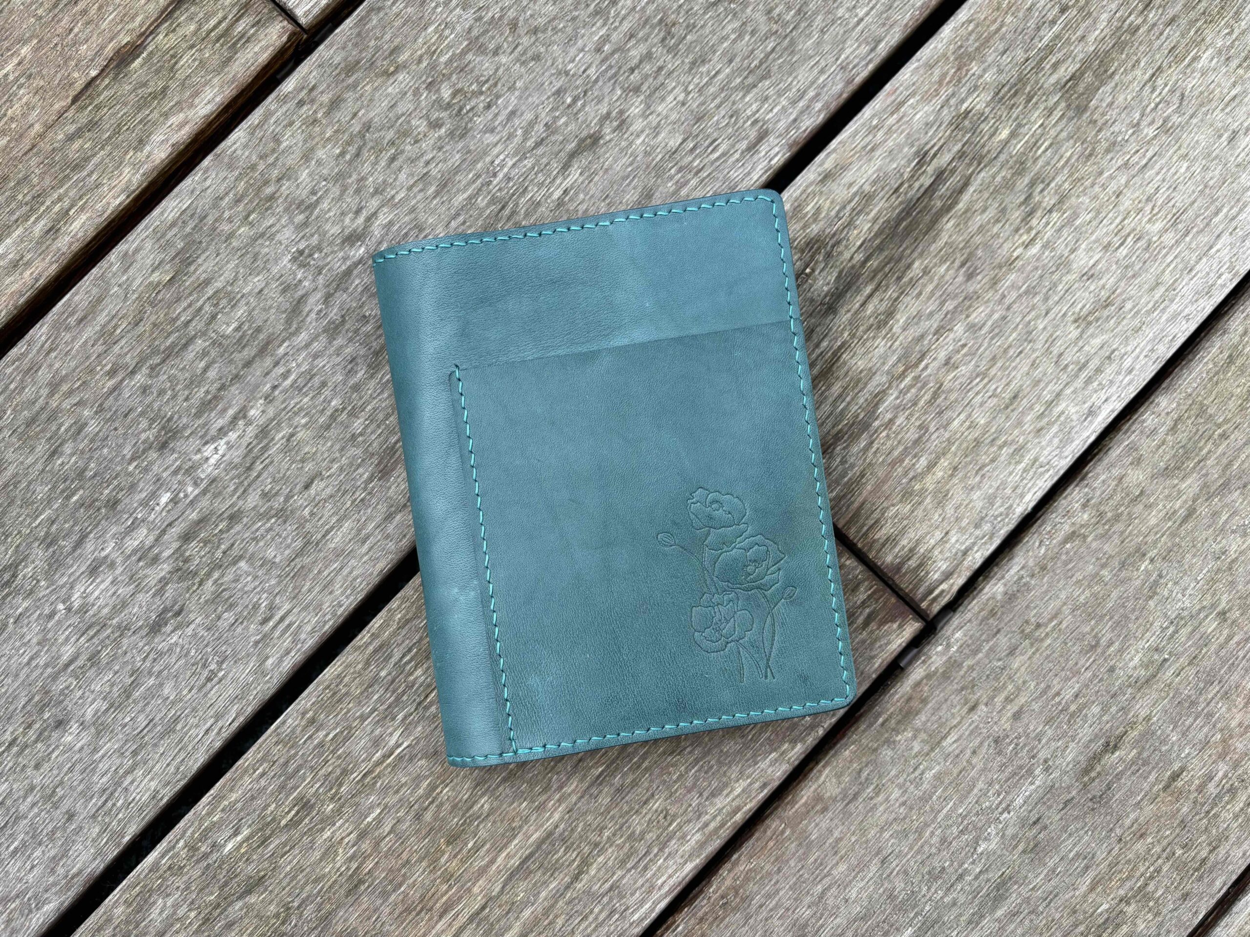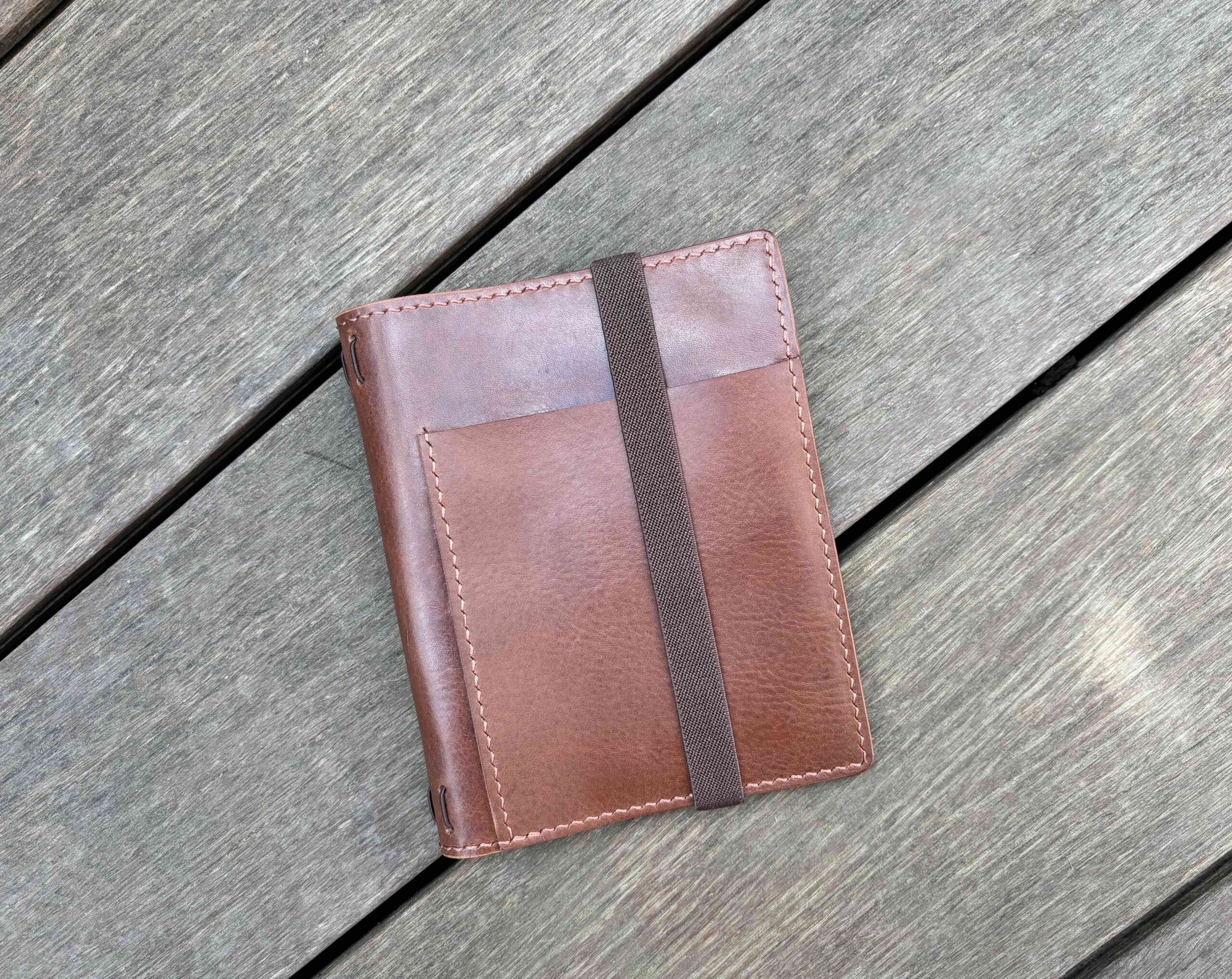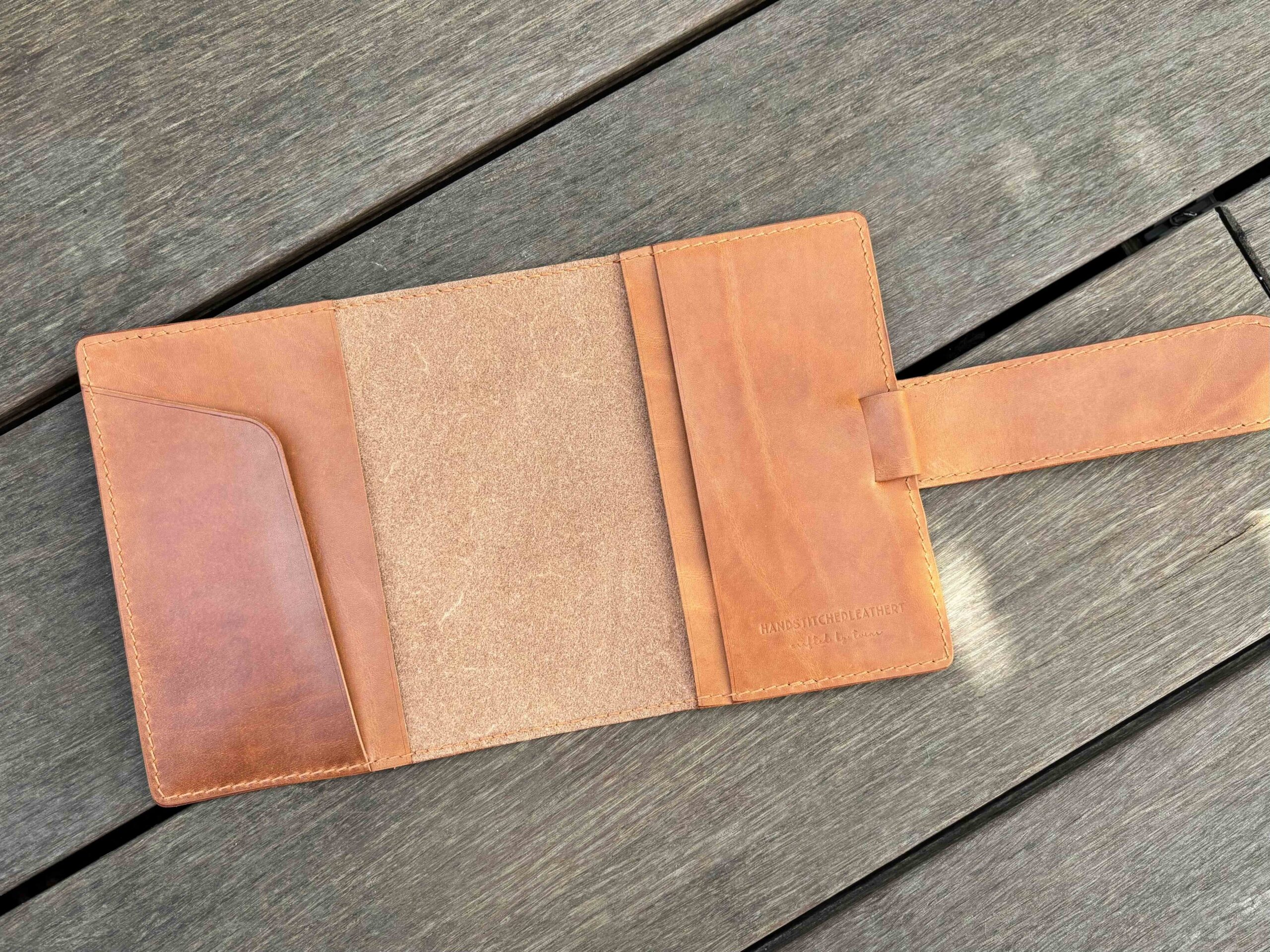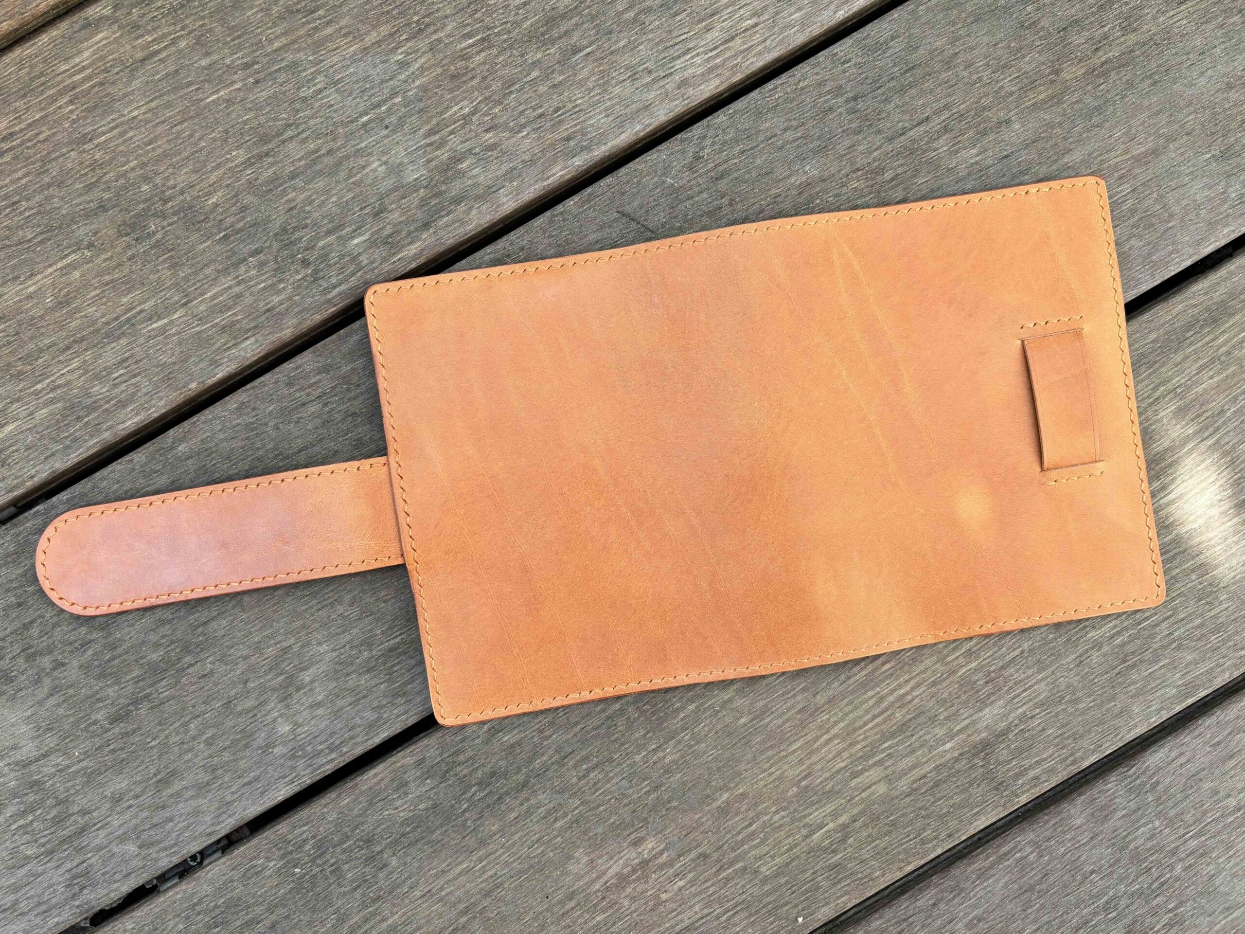 Each full-grain leather hide (1.3- 1.5 mm thick) is unique, with natural variations in color, texture, and markings like scars, stamps on the flash side or stretch marks. These characteristics contribute to the rustic, vintage look of our handmade covers. If you prefer leather with fewer natural marks, please let us know in the order comments—we will do our best to accommodate your request.