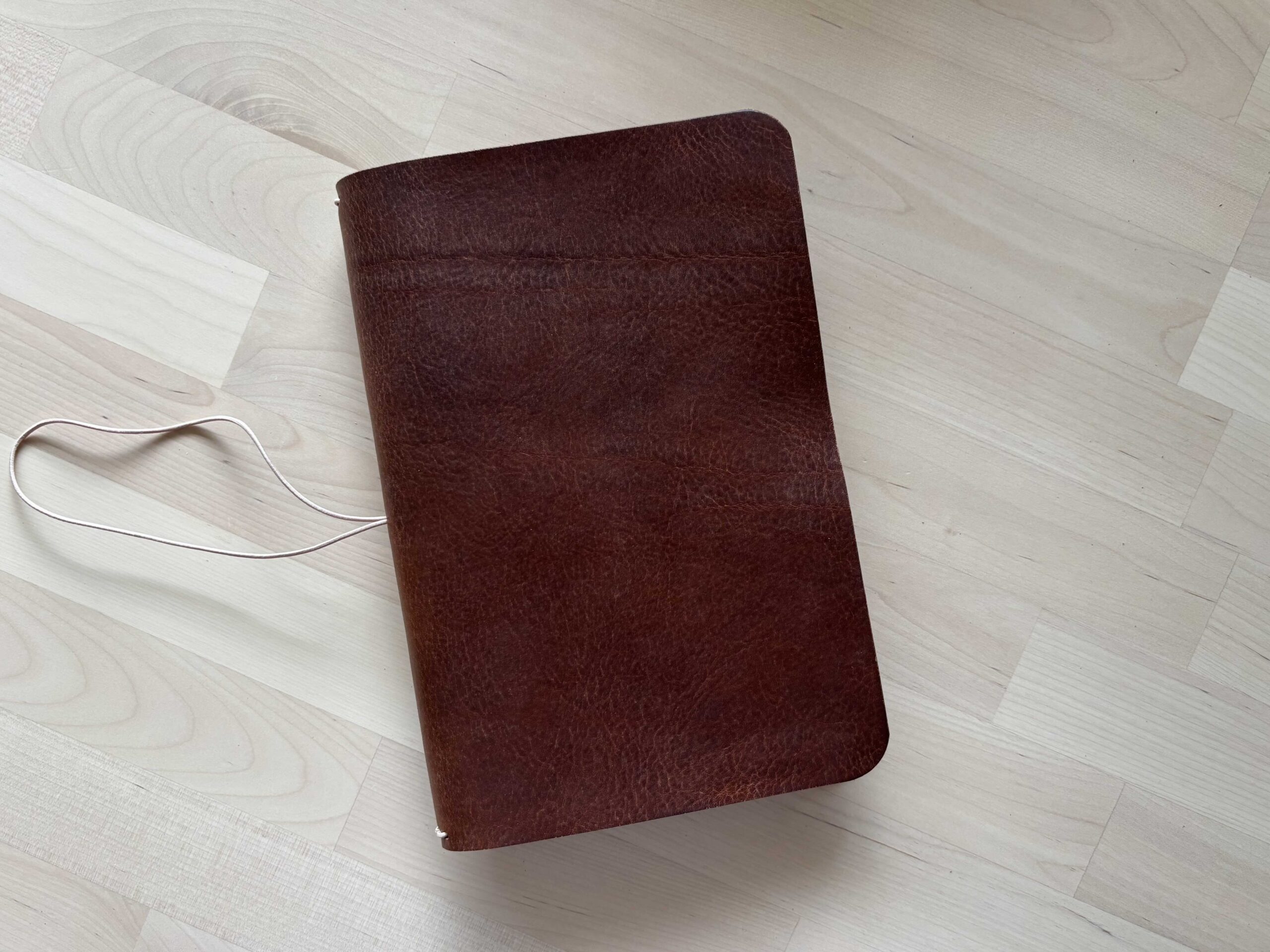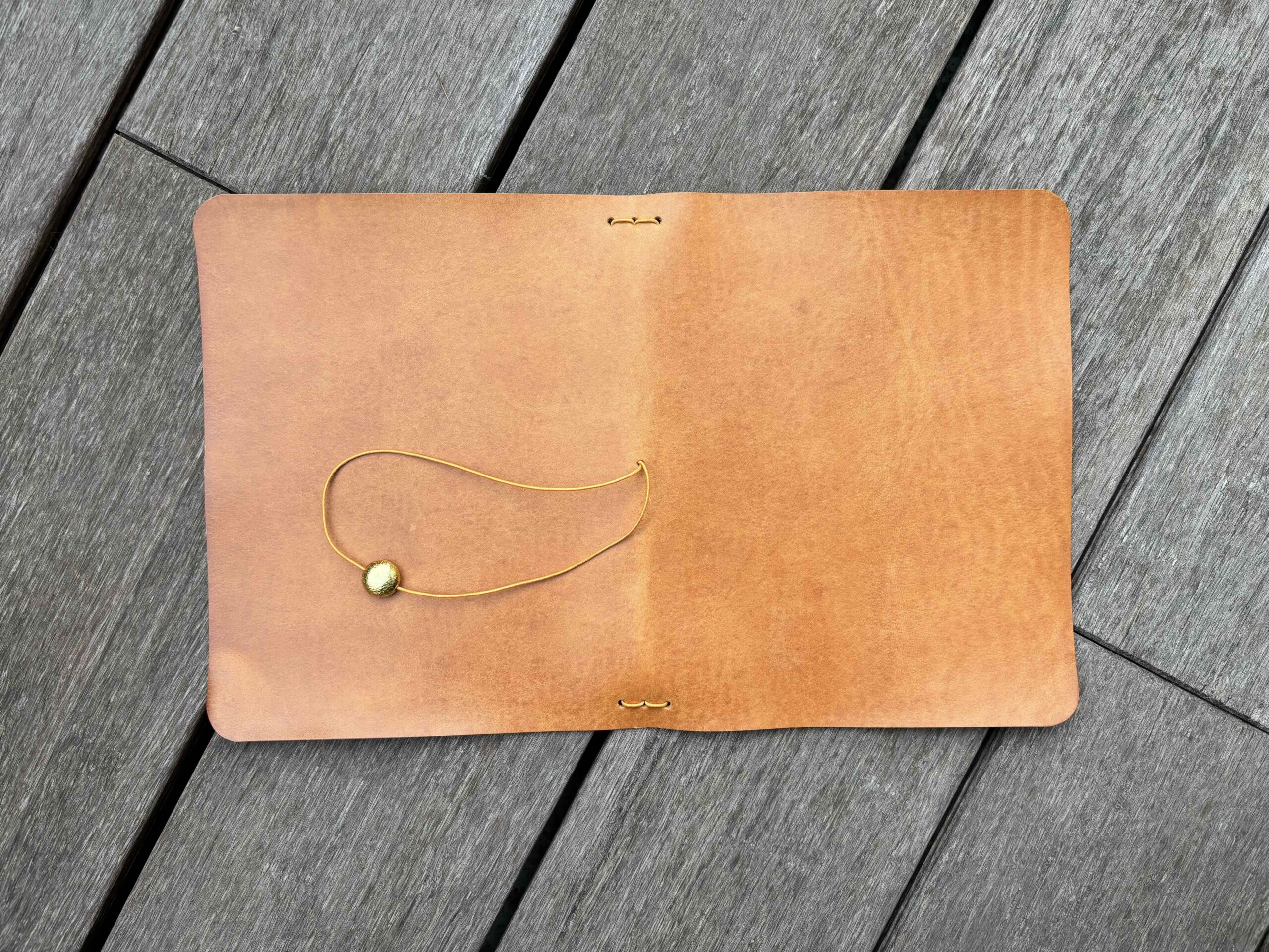 Each full-grain leather hide (1.3- 1.5 mm thick) is unique, with natural variations in color, texture, and markings like scars, stamps on the flash side or stretch marks. These characteristics contribute to the rustic, vintage look of our handmade covers. If you prefer leather with fewer natural marks, please let us know in the order comments—we will do our best to accommodate your request.