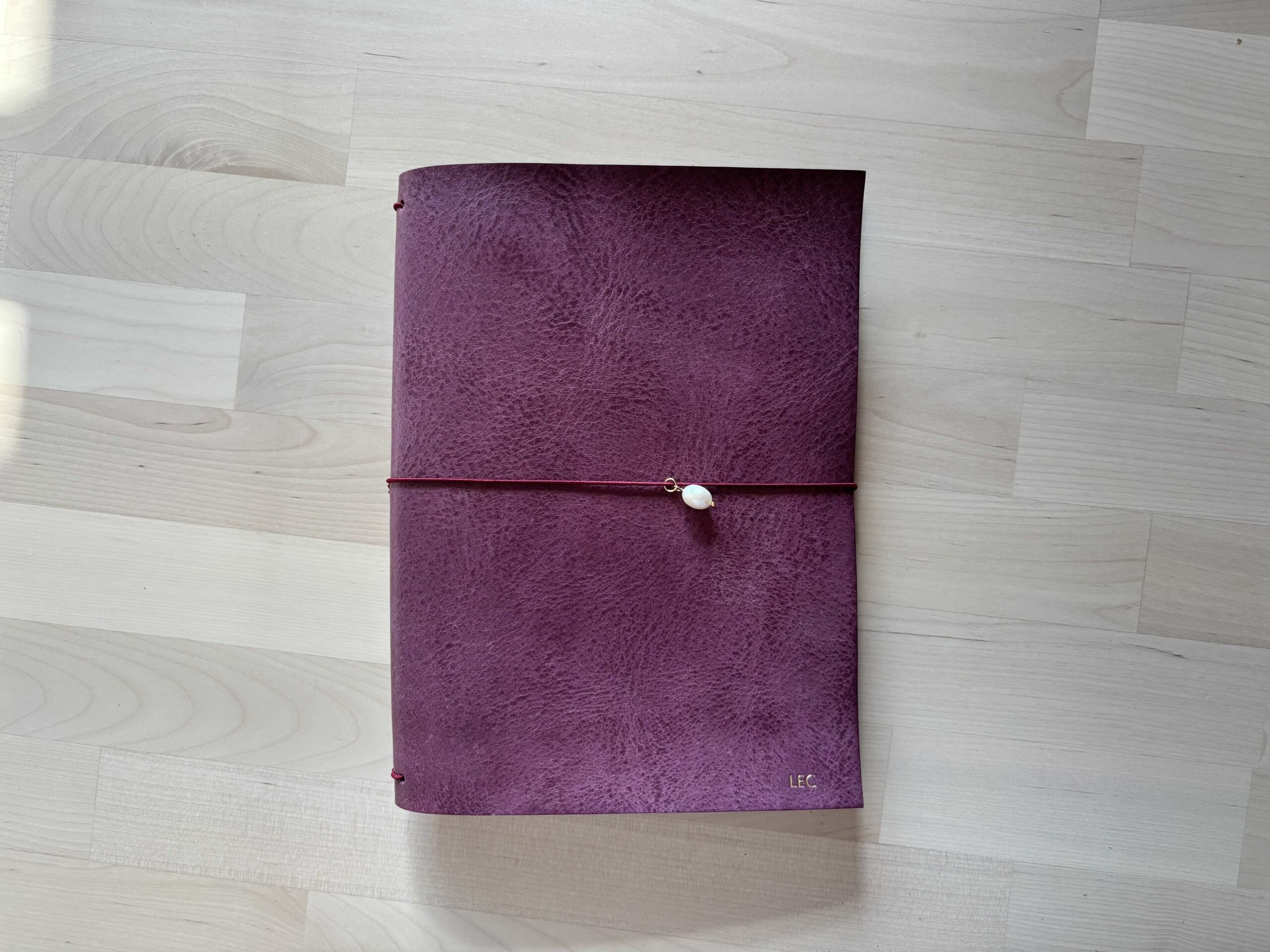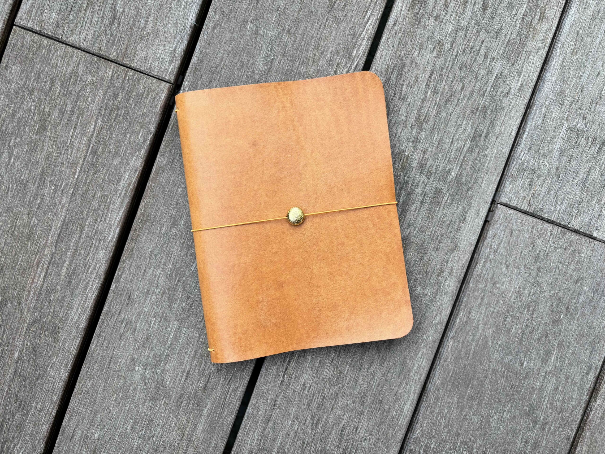 A simple, minimalist leather journal cover with elastic strings to secure your planner and an elastic closure to keep it shut. An optional pen loop can be added as a leather piece on the closure for added functionality.