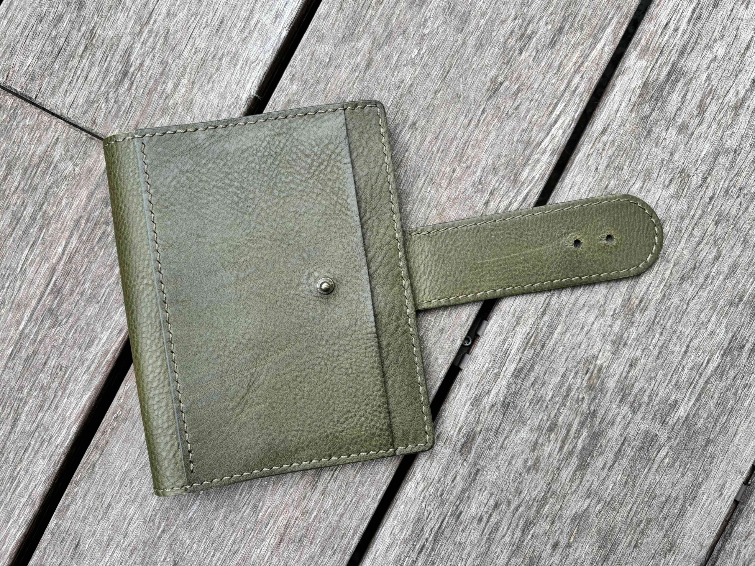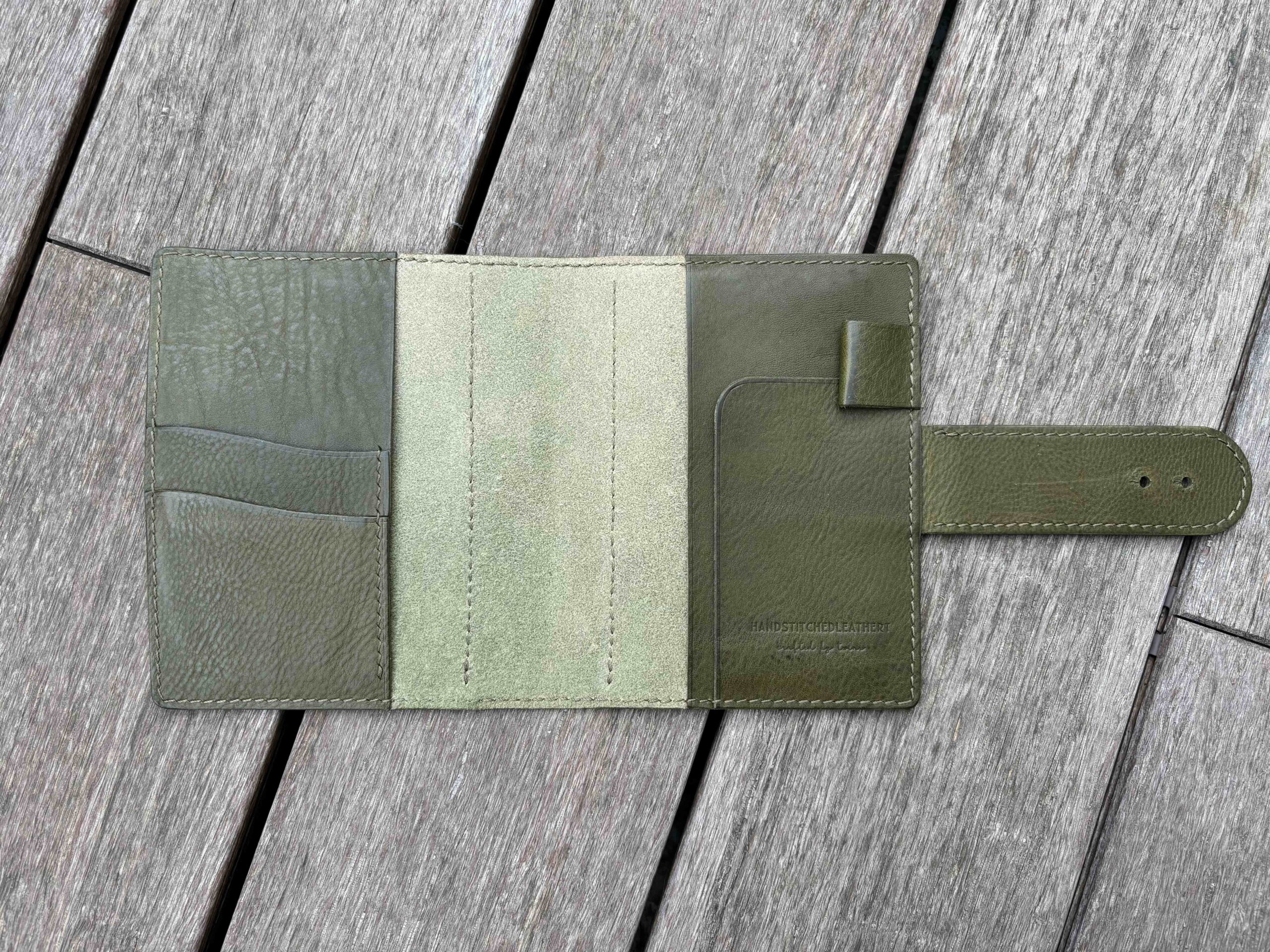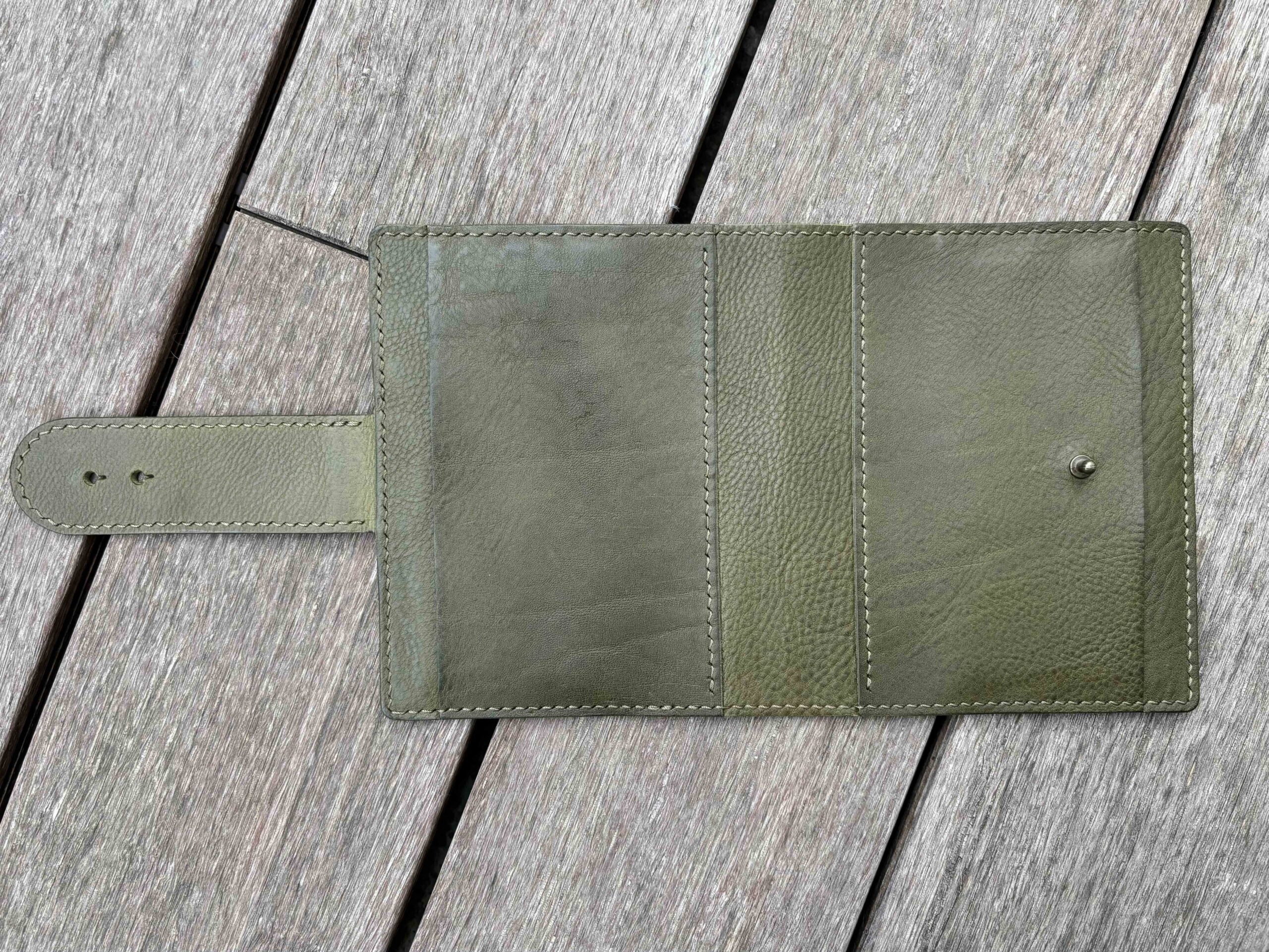 Each full-grain leather hide (1.3- 1.5 mm thick) is unique, with natural variations in color, texture, and markings like scars, stamps on the flash side or stretch marks. These characteristics contribute to the rustic, vintage look of our handmade covers. If you prefer leather with fewer natural marks, please let us know in the order comments—we will do our best to accommodate your request.