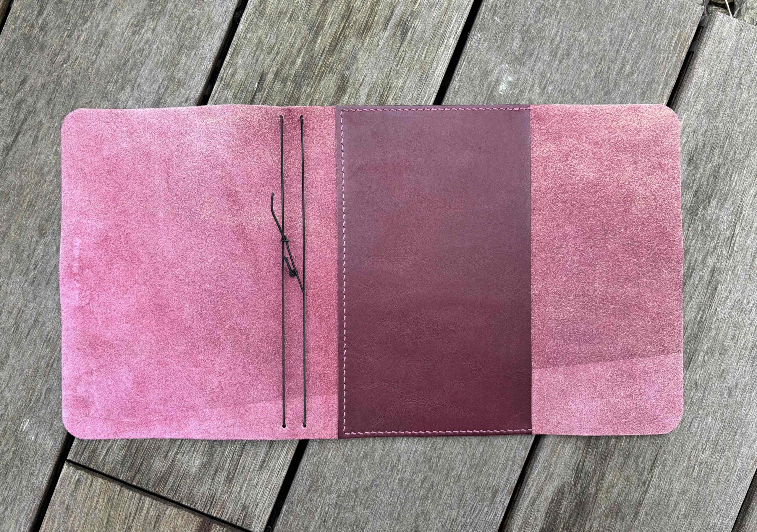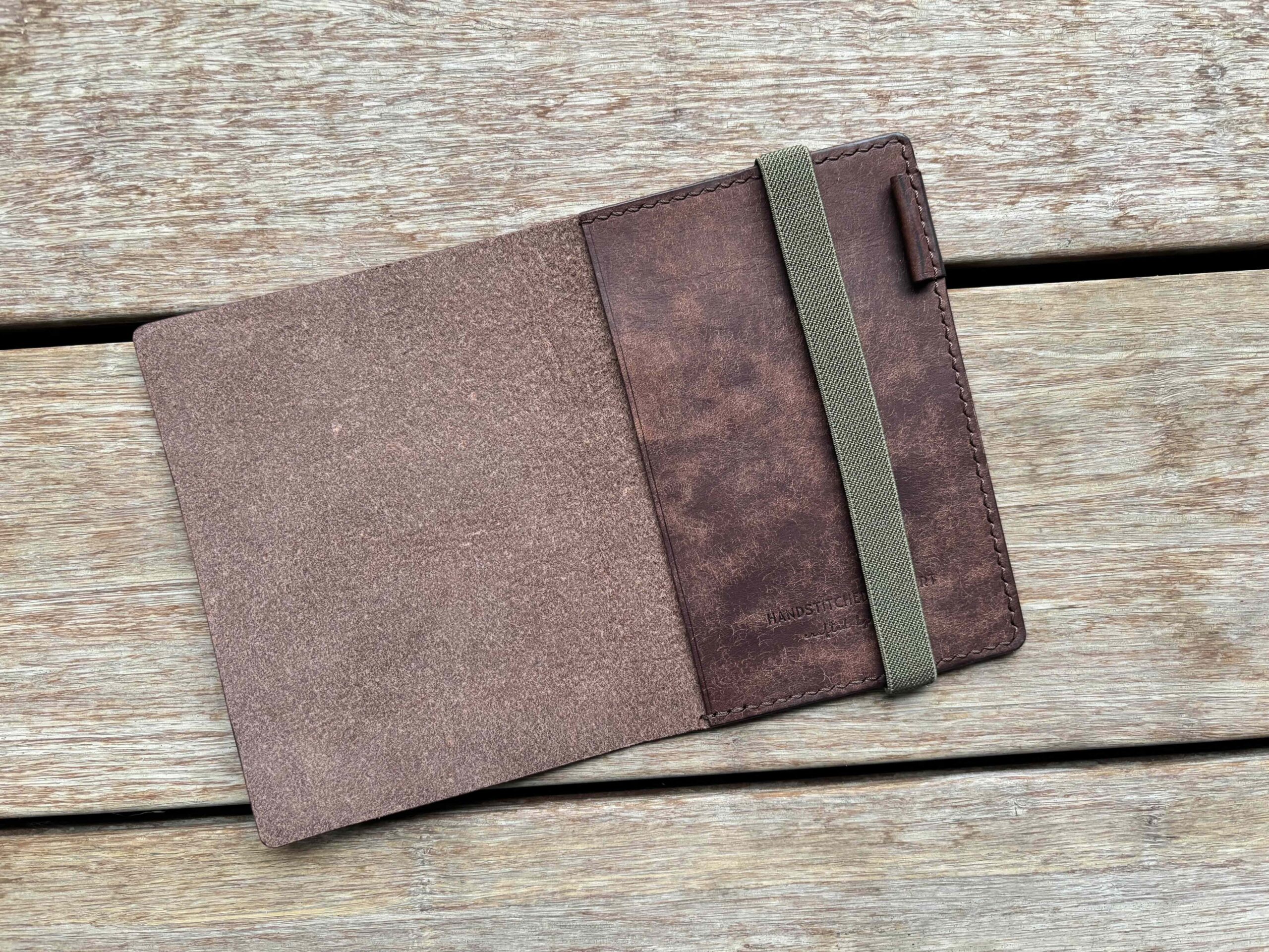 Each full-grain leather hide (1.3- 1.5 mm thick) is unique, with natural variations in color, texture, and markings like scars, stamps on the flash side or stretch marks. These characteristics contribute to the rustic, vintage look of our handmade covers. If you prefer leather with fewer natural marks, please let us know in the order comments—we will do our best to accommodate your request.